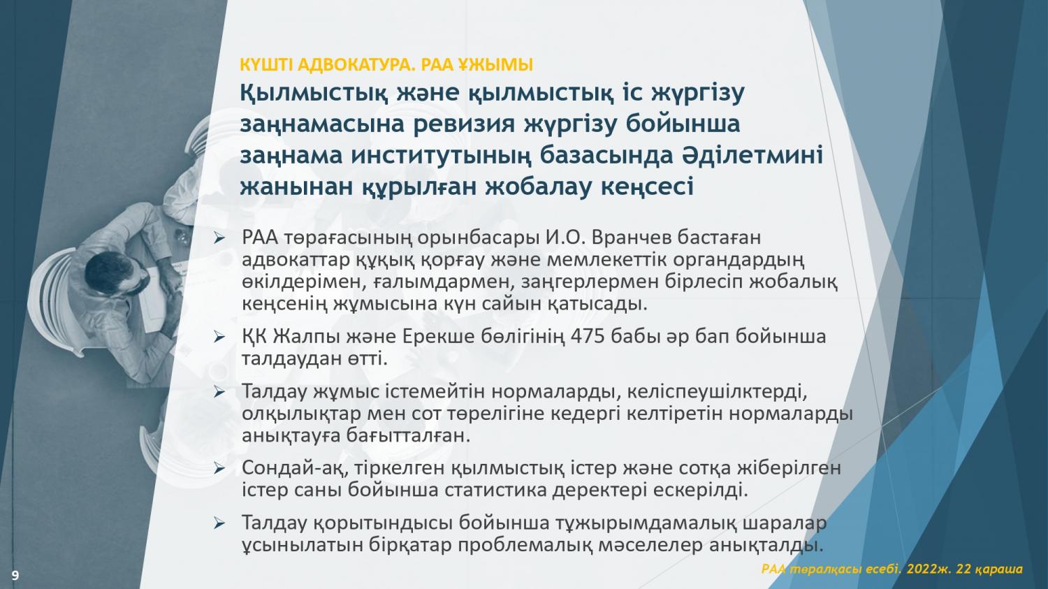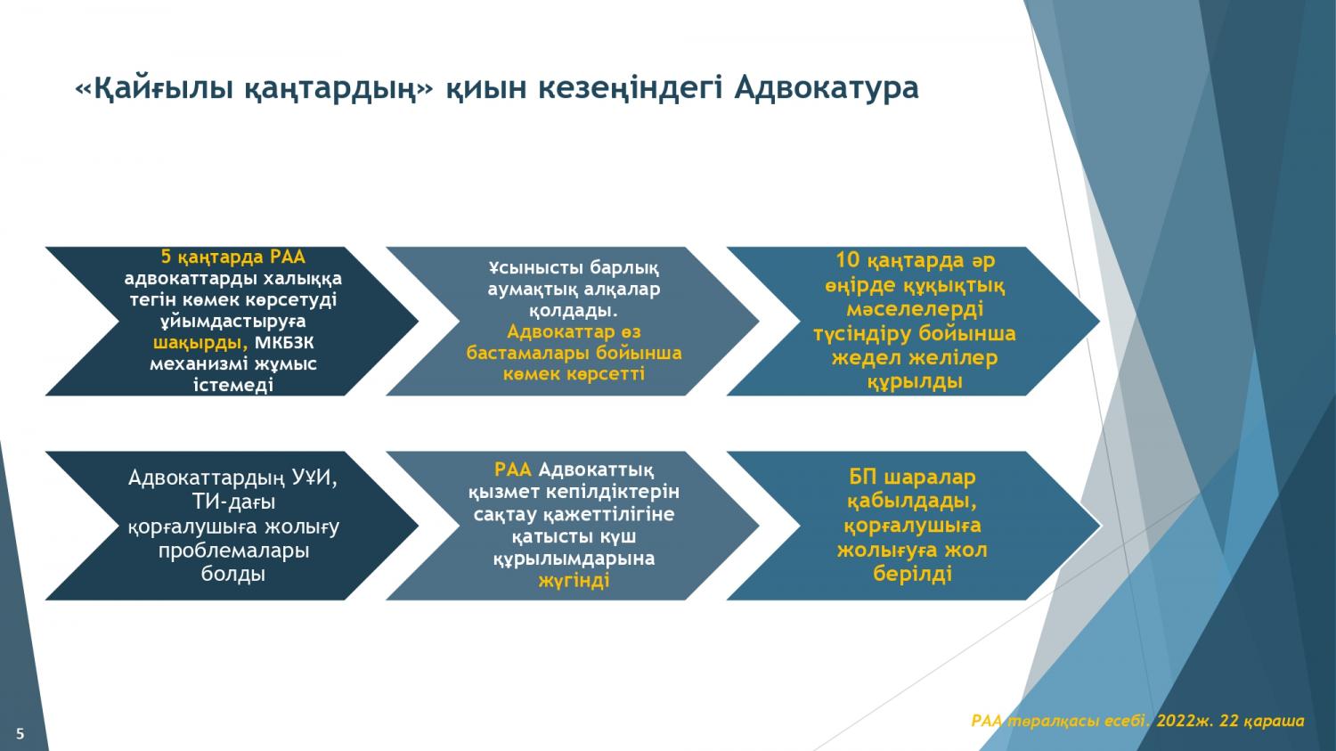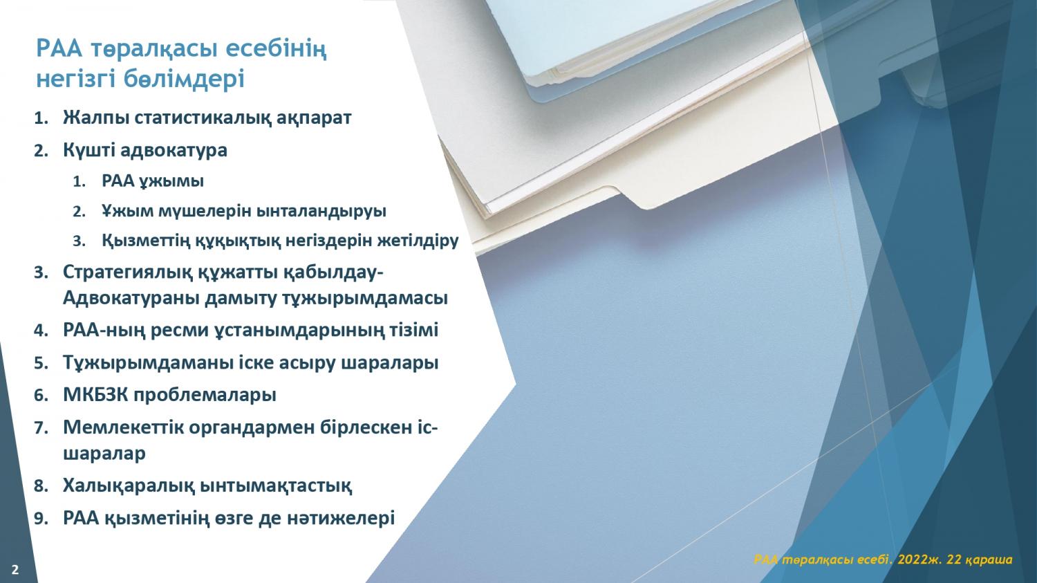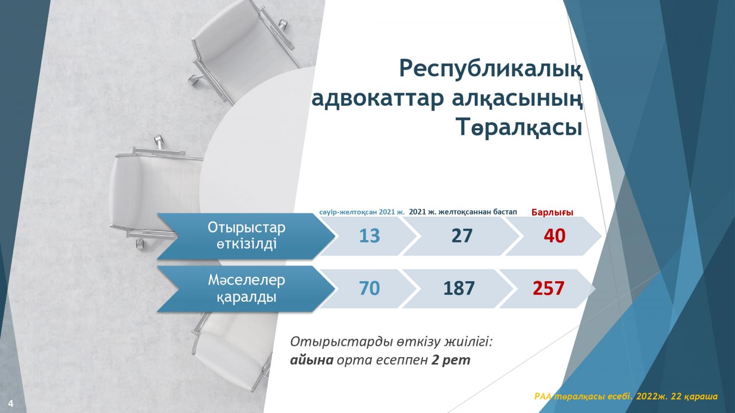 2022 жыл - РЕСПУБЛИКАЛЫҚ АДВОКАТТАР АЛҚАСЫ ТӨРАЛҚАСЫНЫҢ ЕСЕБІ