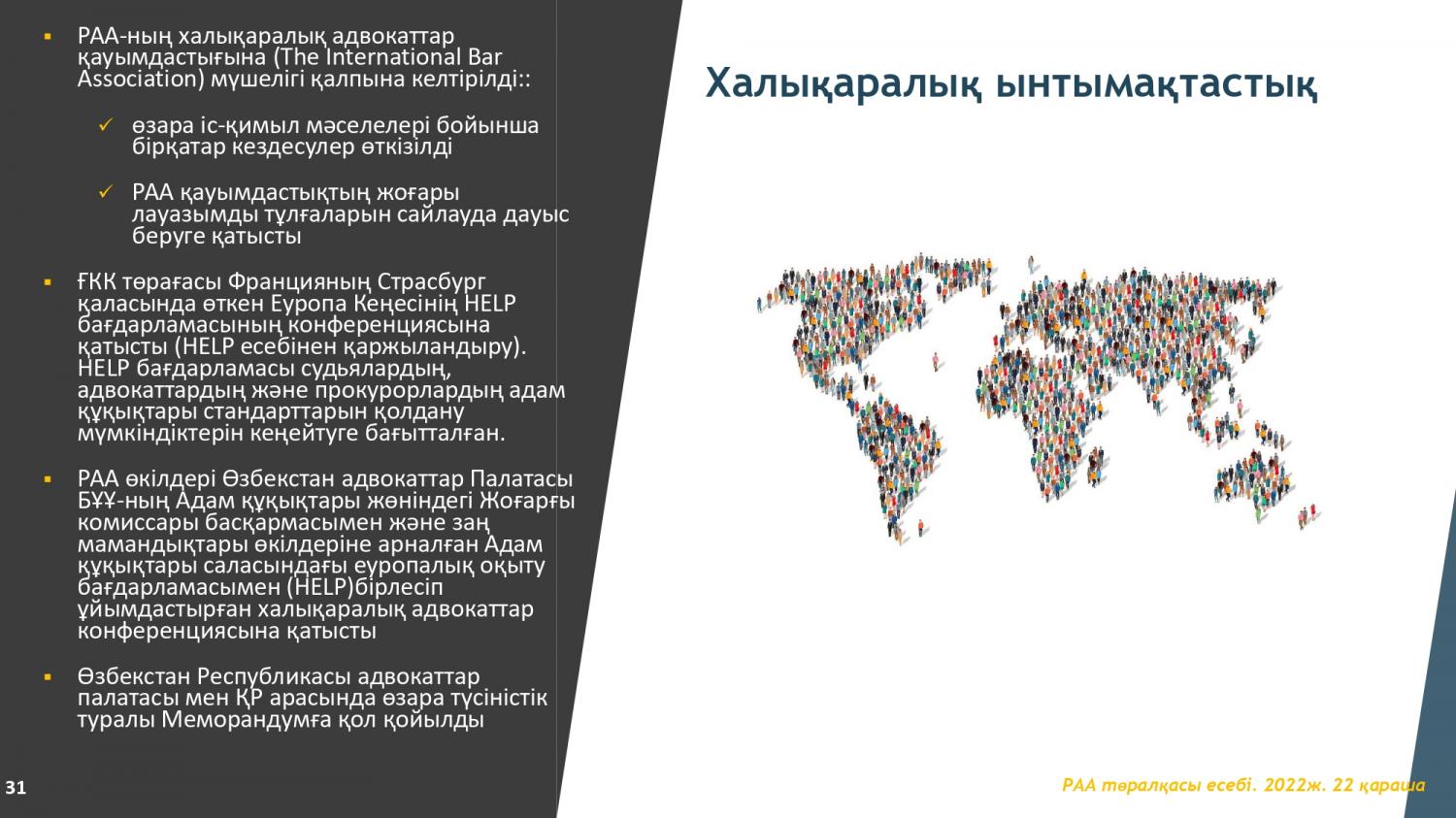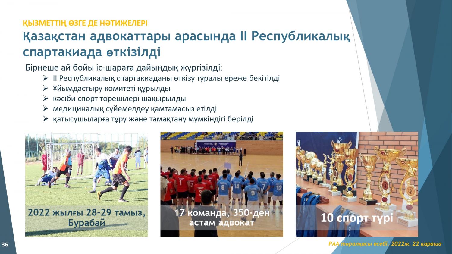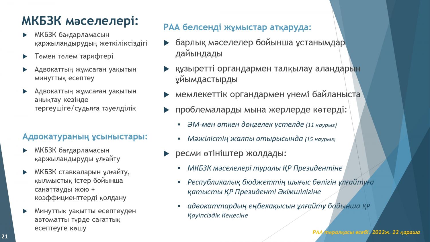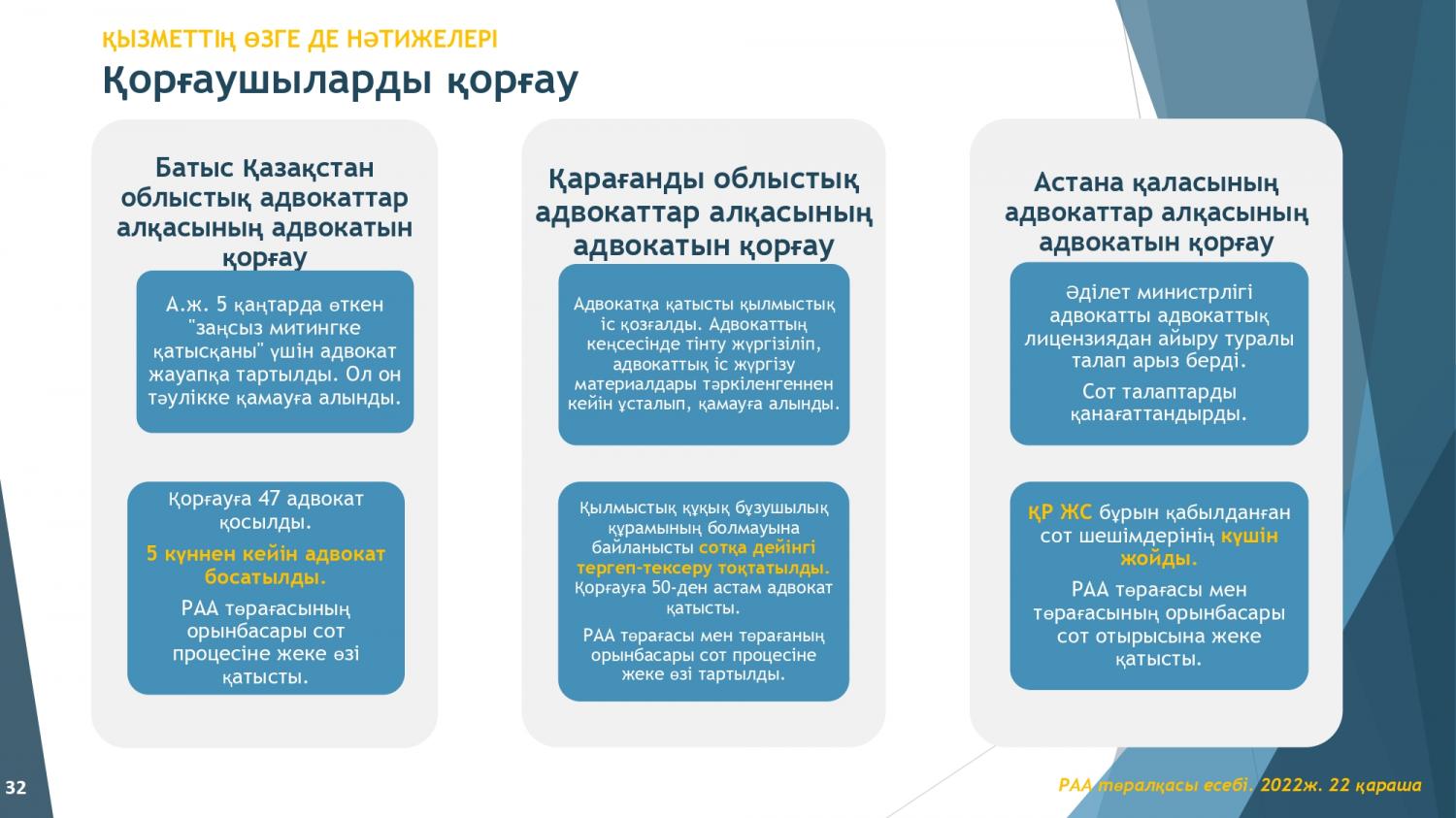 2022 жыл - РЕСПУБЛИКАЛЫҚ АДВОКАТТАР АЛҚАСЫ ТӨРАЛҚАСЫНЫҢ ЕСЕБІ