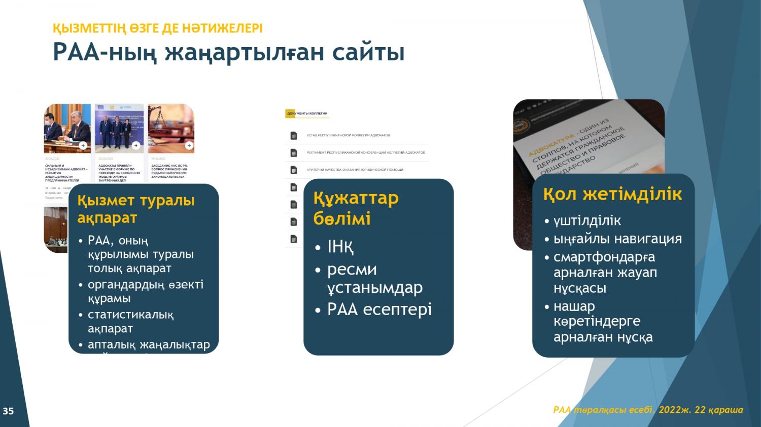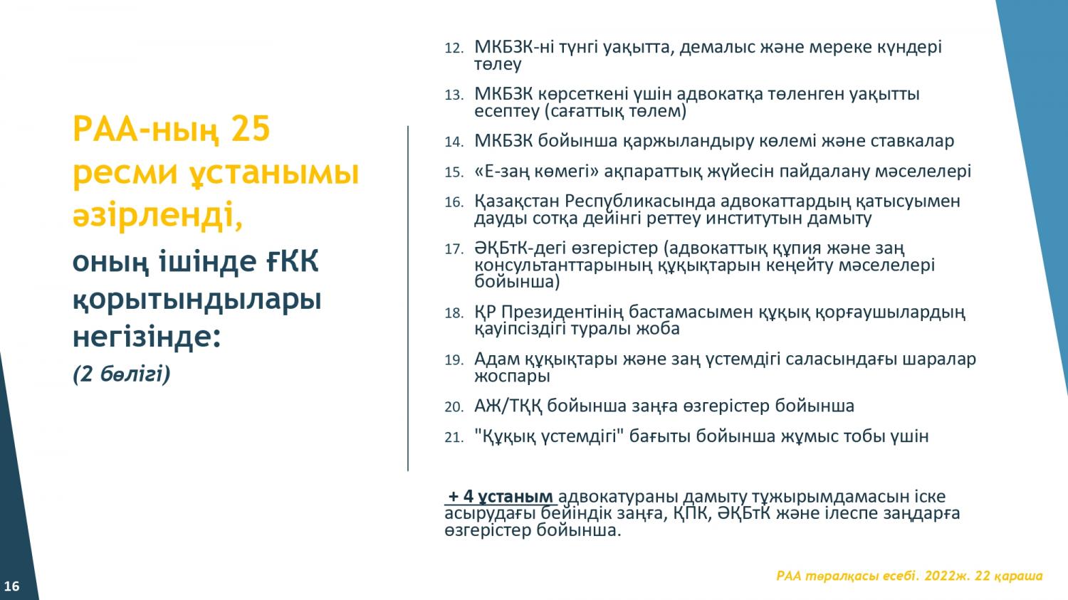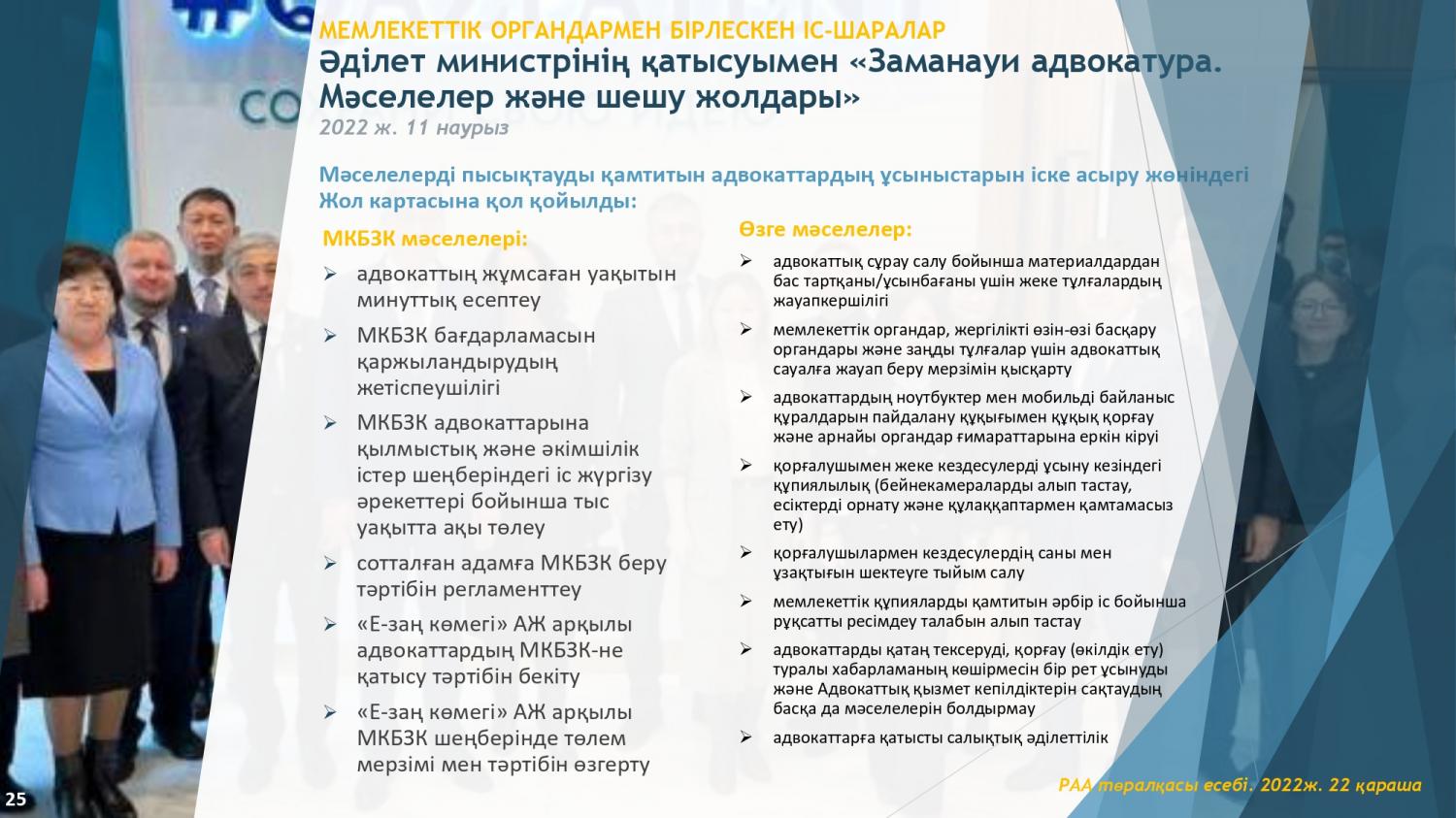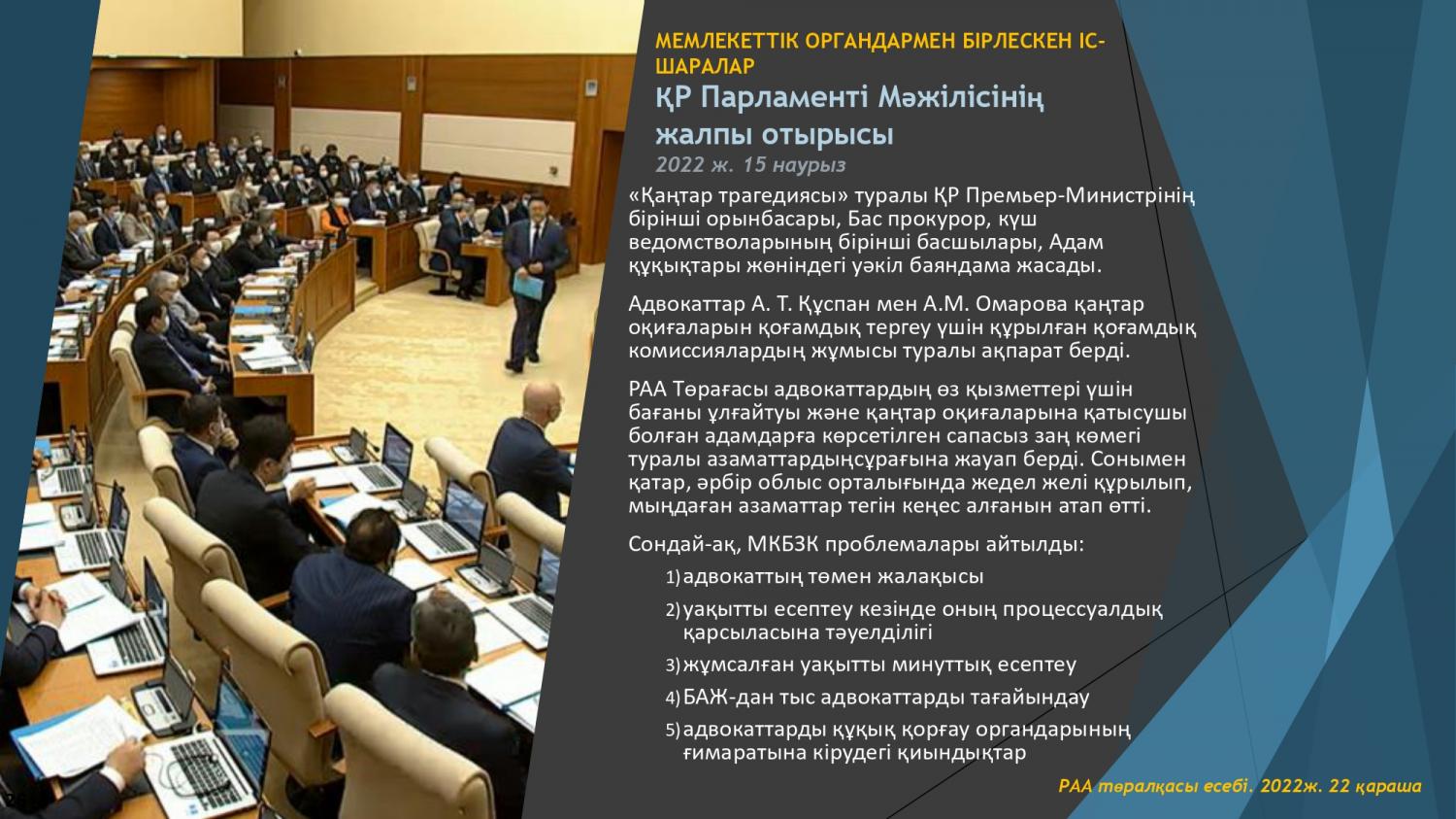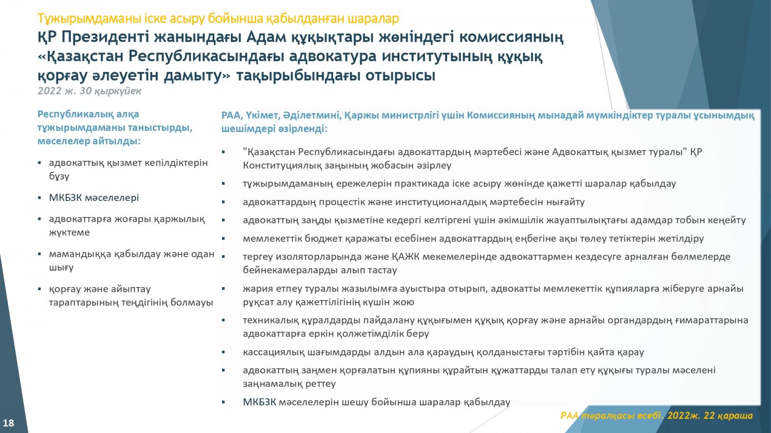 2022 жыл - РЕСПУБЛИКАЛЫҚ АДВОКАТТАР АЛҚАСЫ ТӨРАЛҚАСЫНЫҢ ЕСЕБІ