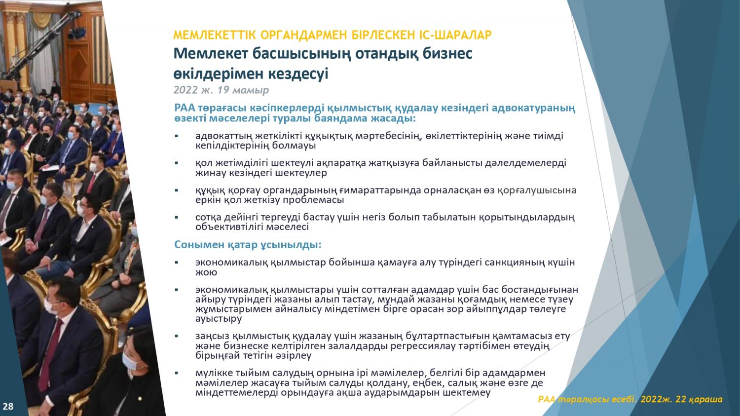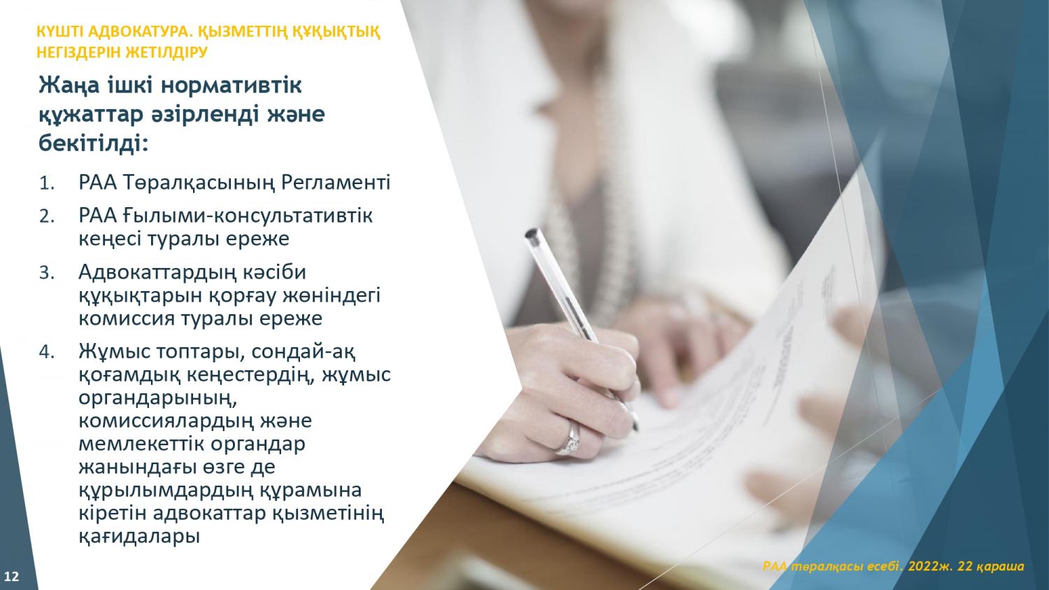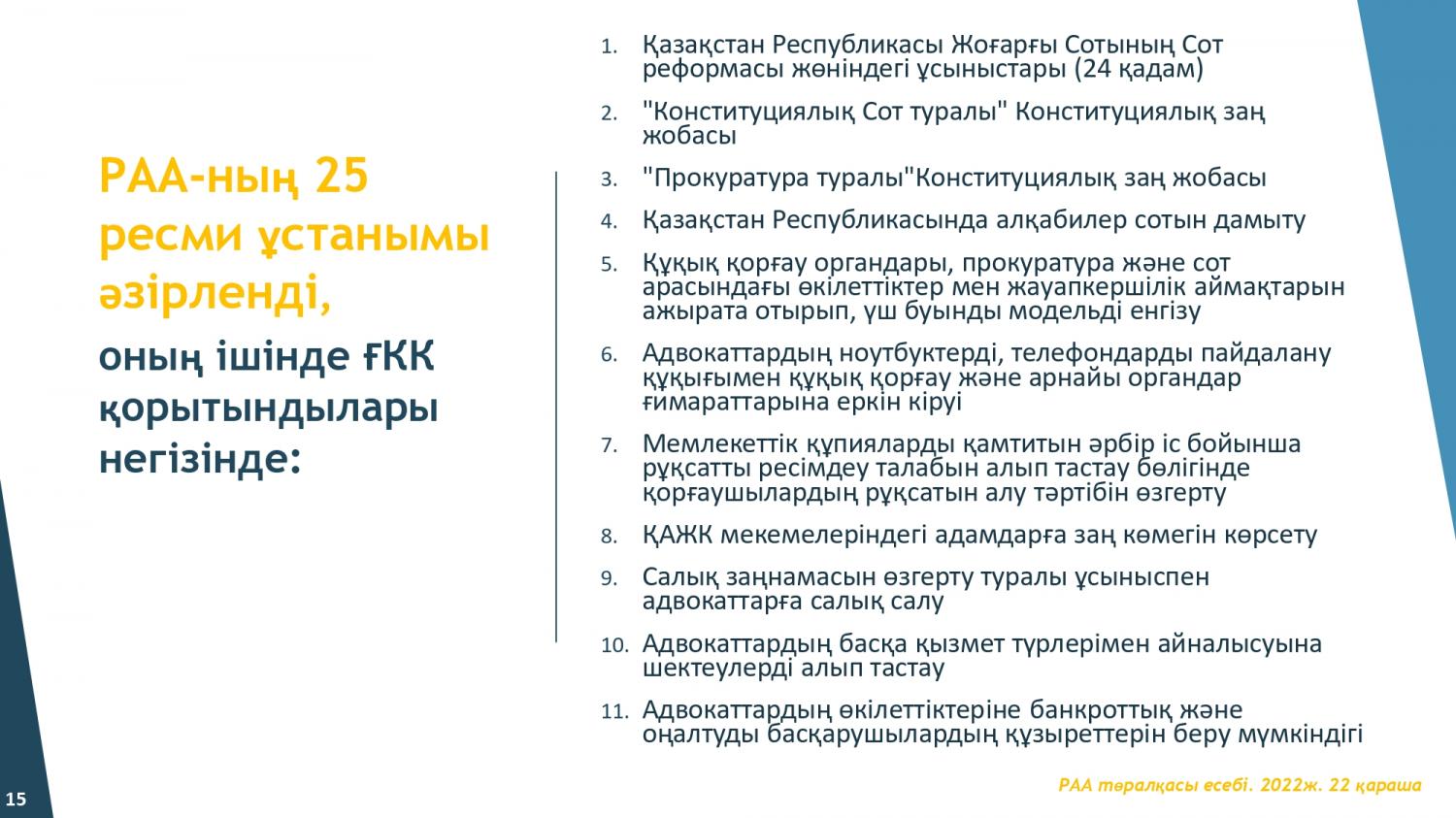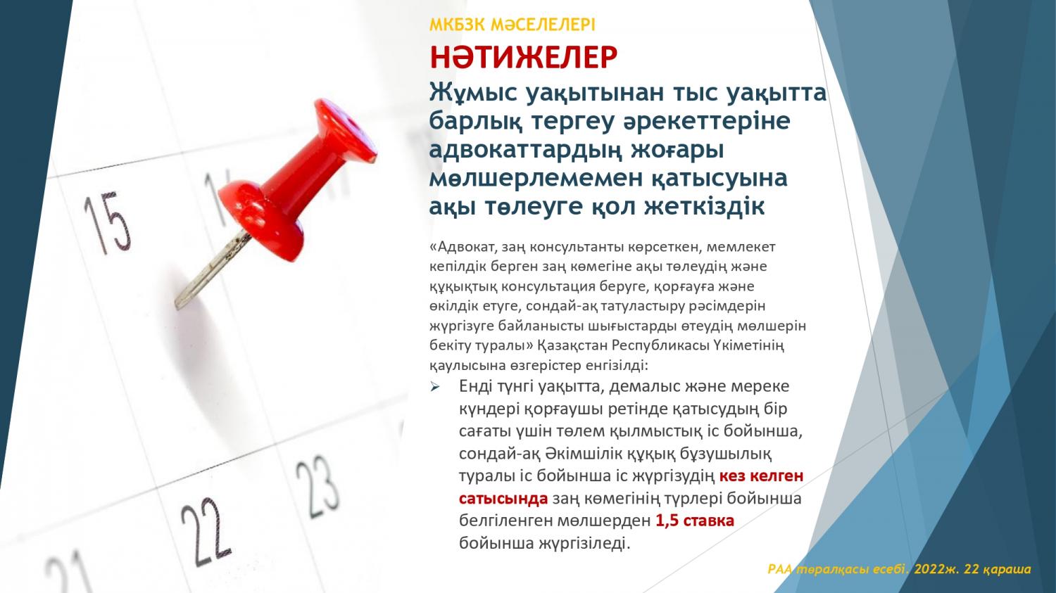 2022 жыл - РЕСПУБЛИКАЛЫҚ АДВОКАТТАР АЛҚАСЫ ТӨРАЛҚАСЫНЫҢ ЕСЕБІ