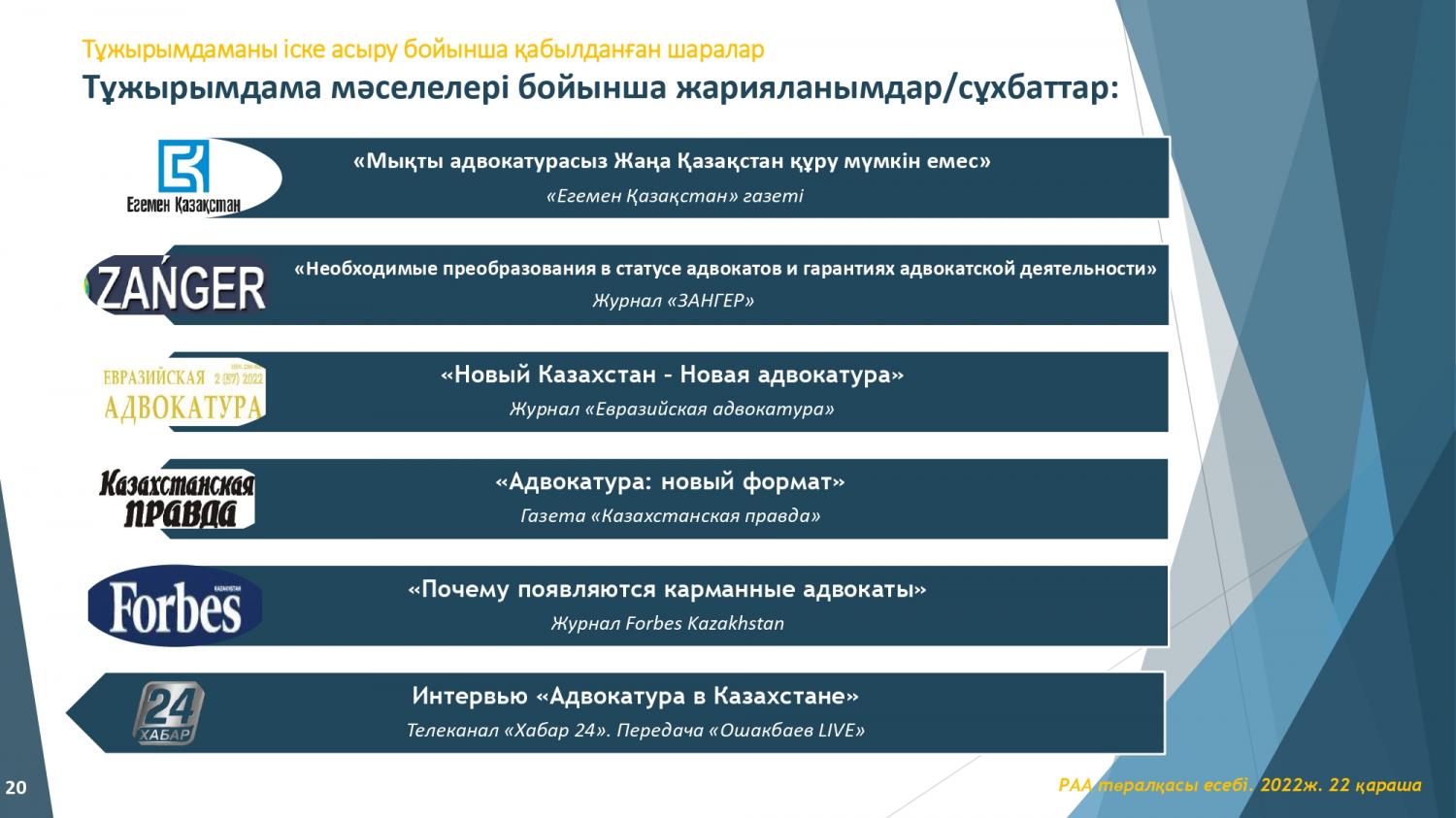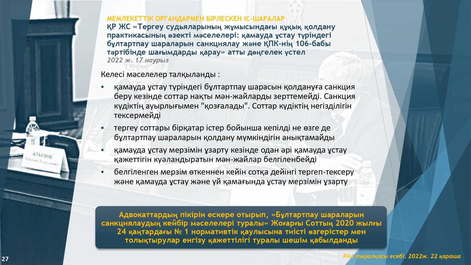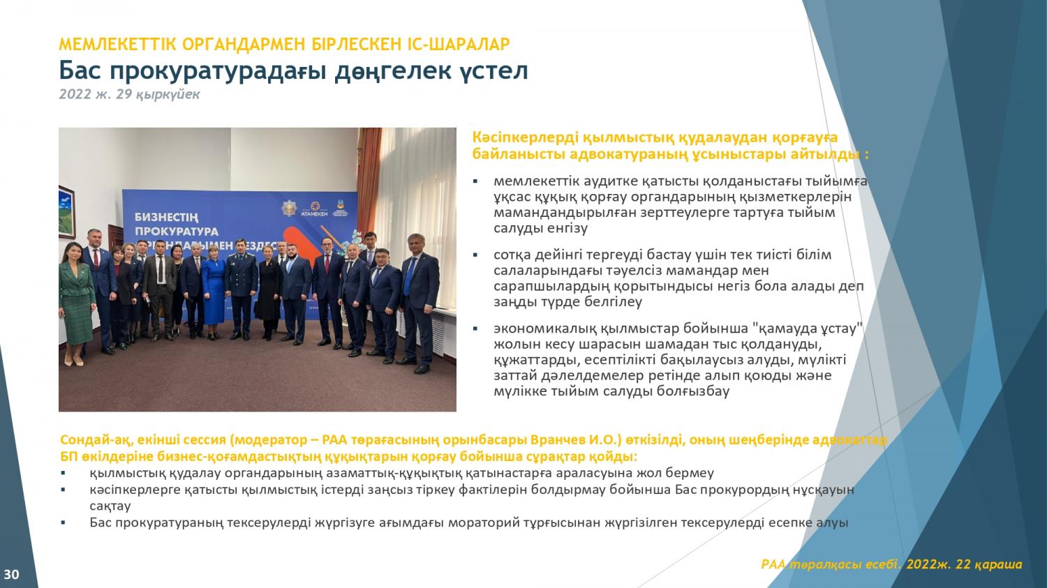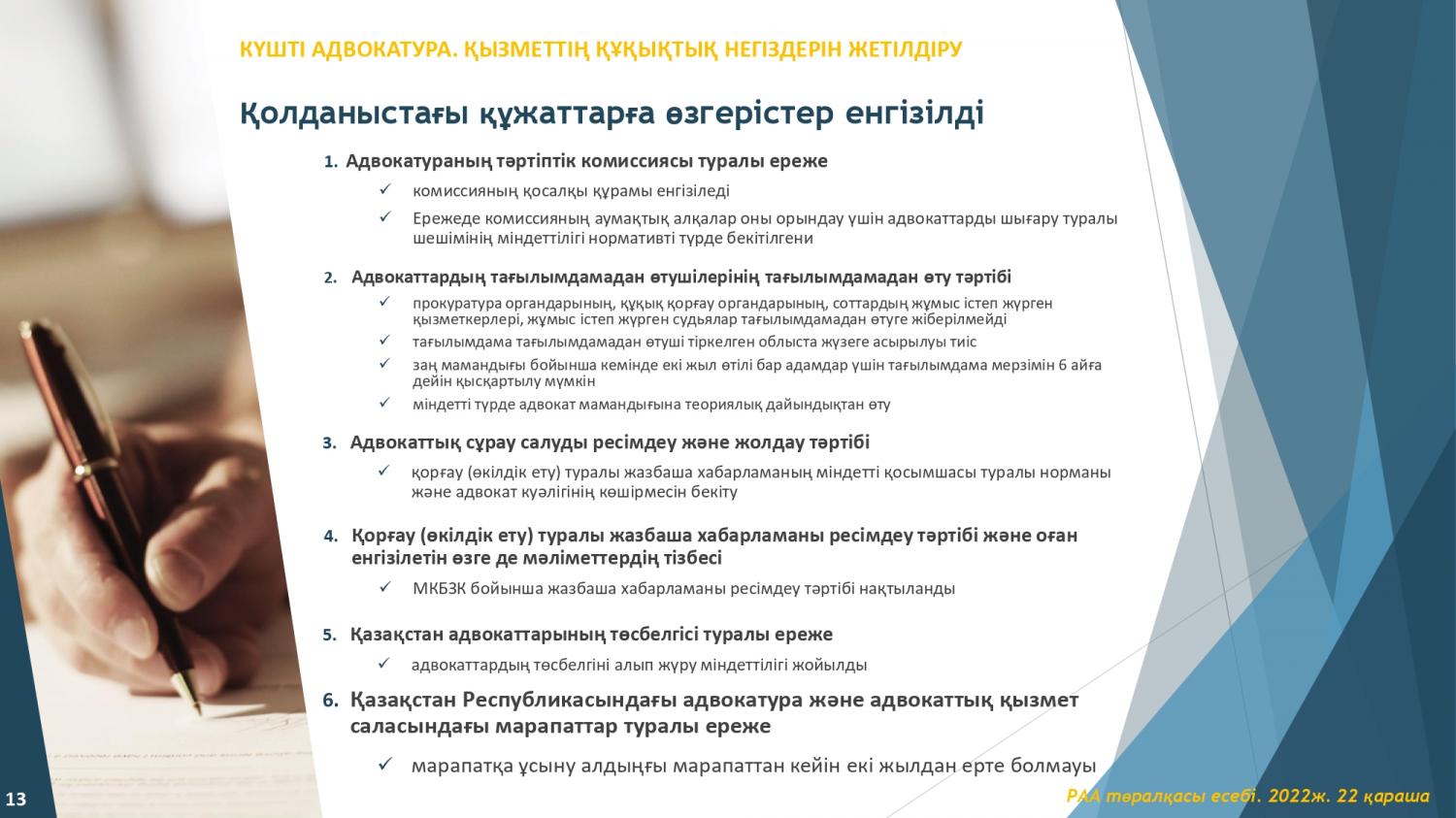 2022 жыл - РЕСПУБЛИКАЛЫҚ АДВОКАТТАР АЛҚАСЫ ТӨРАЛҚАСЫНЫҢ ЕСЕБІ