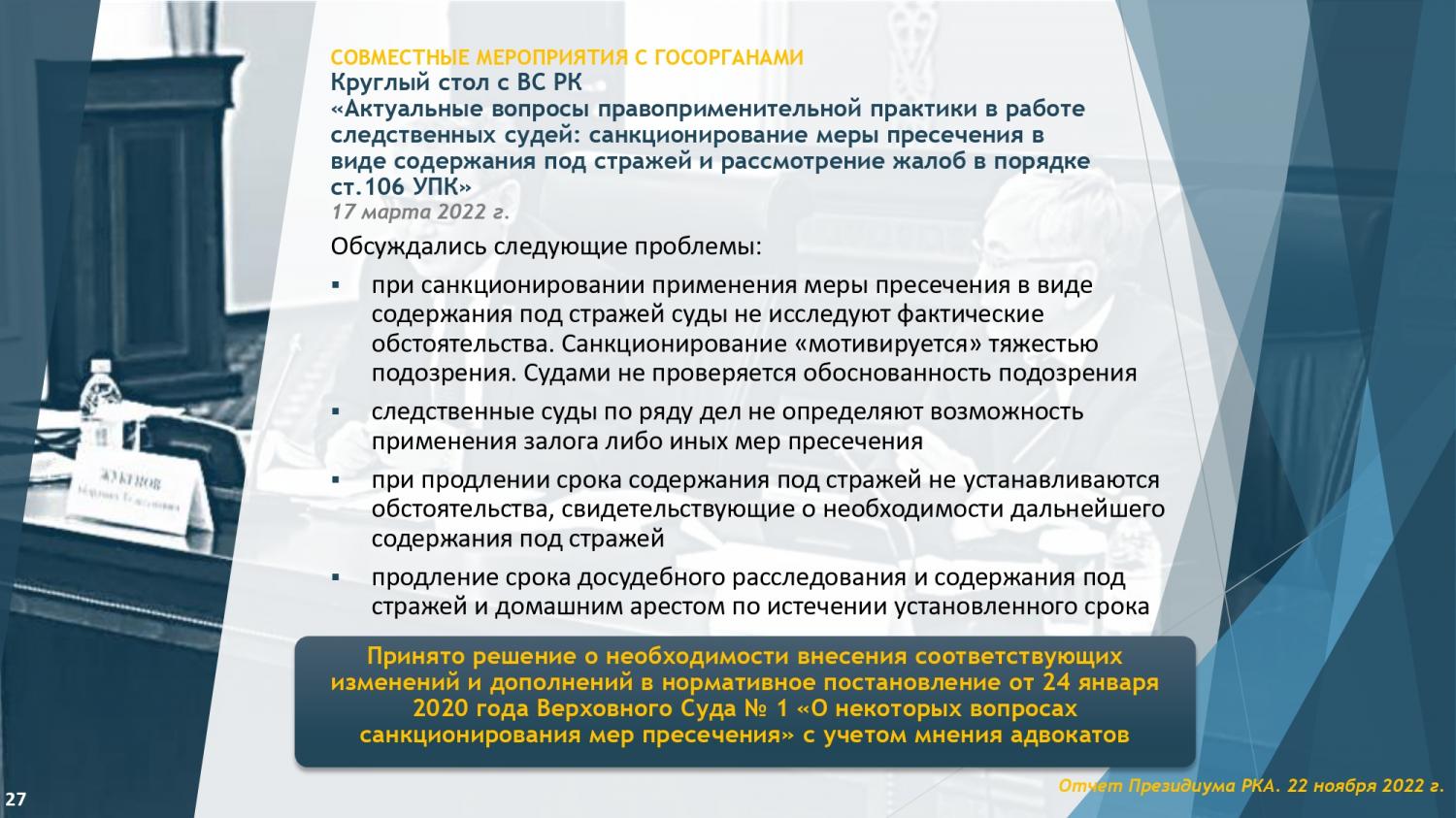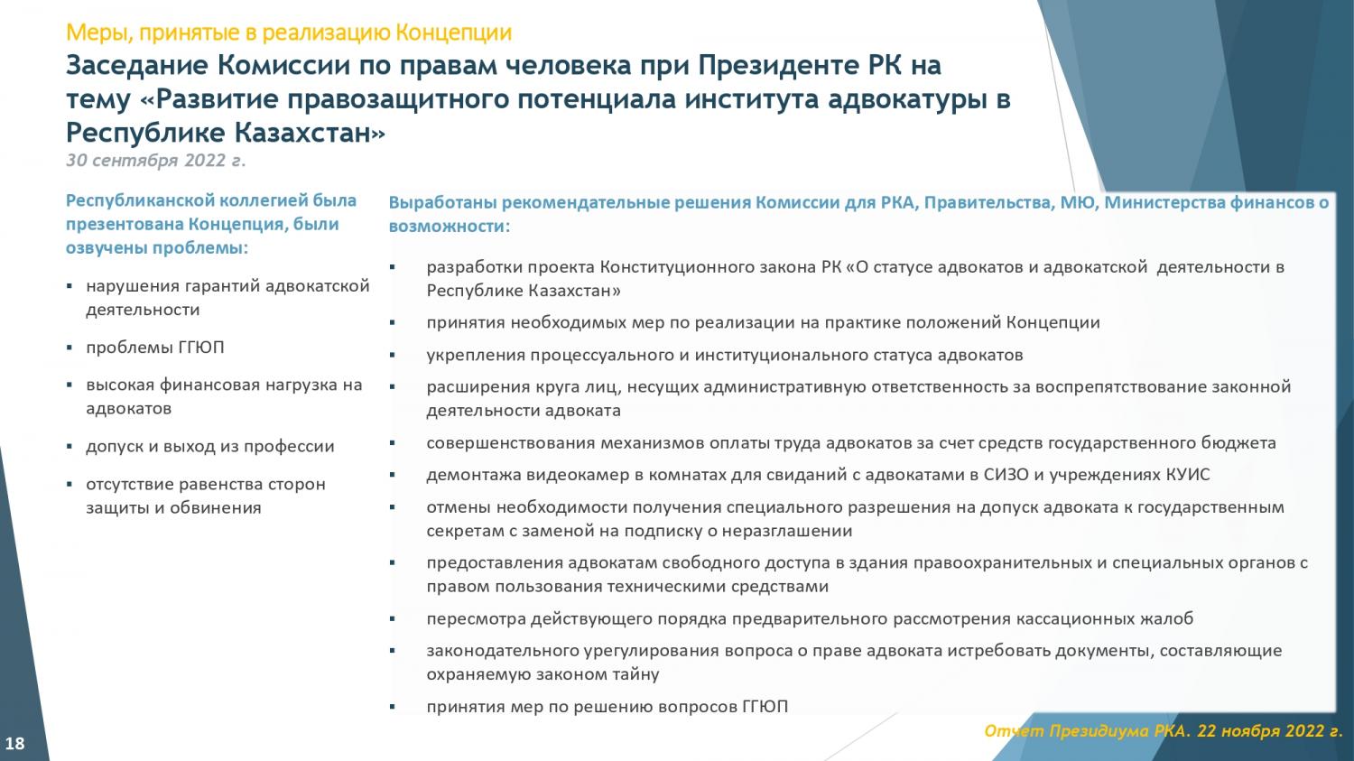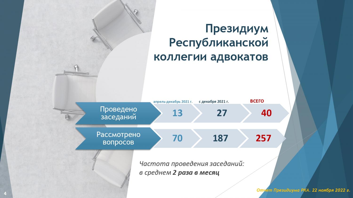 2022 год - ОТЧЕТ О РАБОТЕ ПРЕЗИДИУМА РЕСПУБЛИКАНСКОЙ КОЛЛЕГИИ АДВОКАТОВ