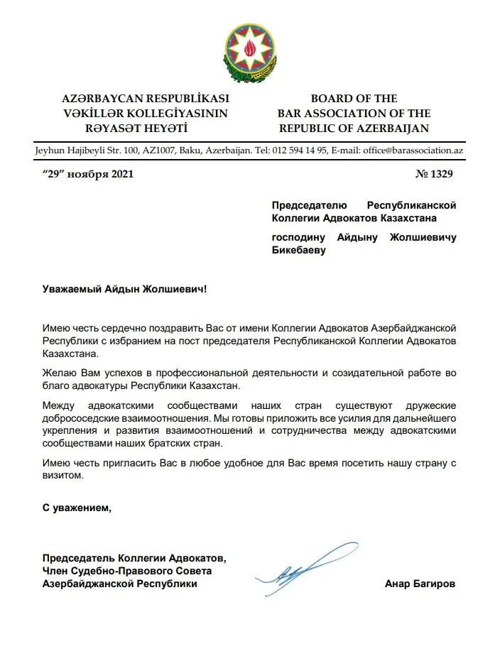 ПОЗДРАВЛЕНИЕ ОТ АЗЕРБАЙДЖАНСКОЙ КОЛЛЕГИИ