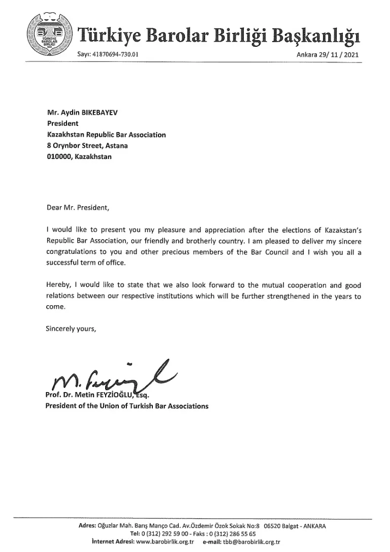 ПОЗДРАВЛЕНИЕ ОТ АССОЦИАЦИИ АДВОКАТОВ ТЮРКОЯЗЫЧНЫХ И РОДСТВЕННЫХ СТРАН